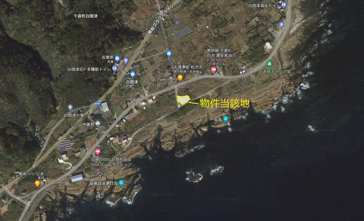 今回ご紹介する物件は、南房総のリゾート物件の中でも特に人気とレア度の高い海最前列立地となります。敷地から海までの景色には遮るものが一切なく、それに加え隣接に民家もないという人気の条件が揃った土地。背後の目線にはポツポツとラグジャリーな別荘などが視界に入るが、概ね「ポツンと一軒家」的な土地である。海を条件とした物件も市場には多々あれど、これだけ煩わしさを感じさせない物件はそう滅多にお目に掛れないのが実情ではなかろうか。話は逸れるが、数年前にこの物件のすぐ近くで売られていた土地を、ホテル関係に勤務されているアメリカ人のお客様にご案内した経験がある。その方はアメリカ東海岸の出身と言っていたが、ここ白間津の海を見て「まるでコキョウのウミにキタみたいデス~!ボーソー、ビューリフォー!ナ~イス、ベリーナイス!」と海に向かい叫んでいたことをふと思い出した。その姿を見て、「ん!?」と驚かされた半面、仕事で世界中を回ってきた方に褒められ、何だか妙にうれしかったことや、またこの目の前にある海景はそれだけのレベルなんだと認識させられた。